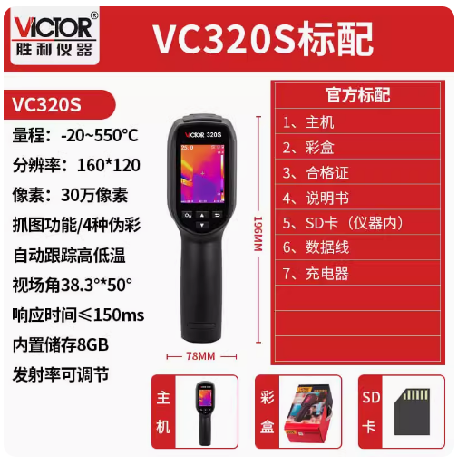 VICTOR 320S 紅外熱成像儀是一款具有熱成像圖像的手持測溫產(chǎn)品,支持...