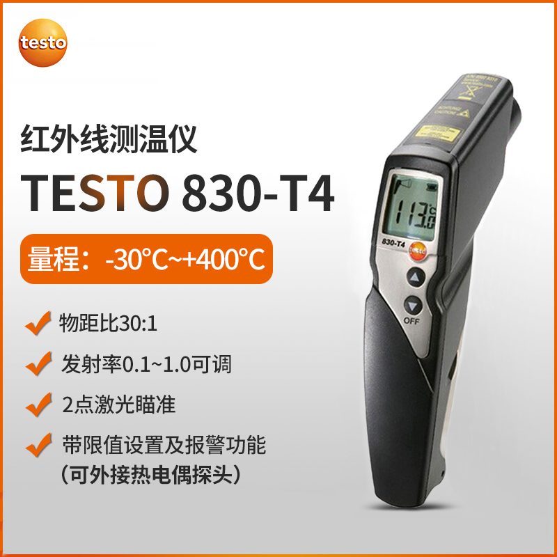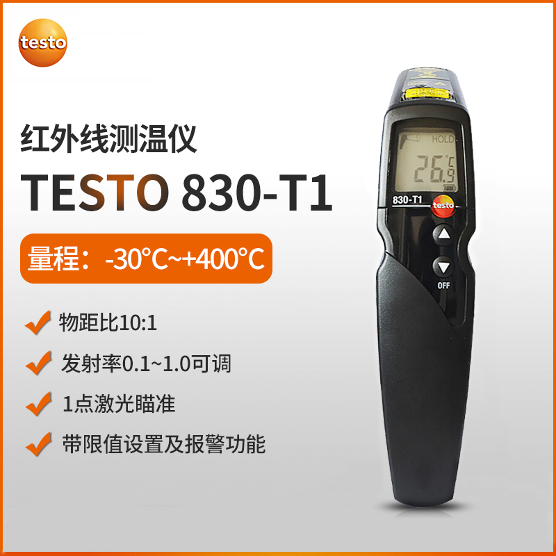 testo 830-T1紅外測(cè)溫儀,單點(diǎn)激光瞄準(zhǔn),光學(xué)分辨率10:1,廣泛適用于各行各...