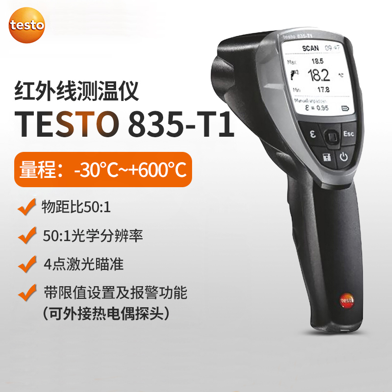 testo 835-T1紅外測(cè)溫儀能保在適當(dāng)距離測(cè)量小物件溫度時(shí)的安全性和準(zhǔn)確性,...