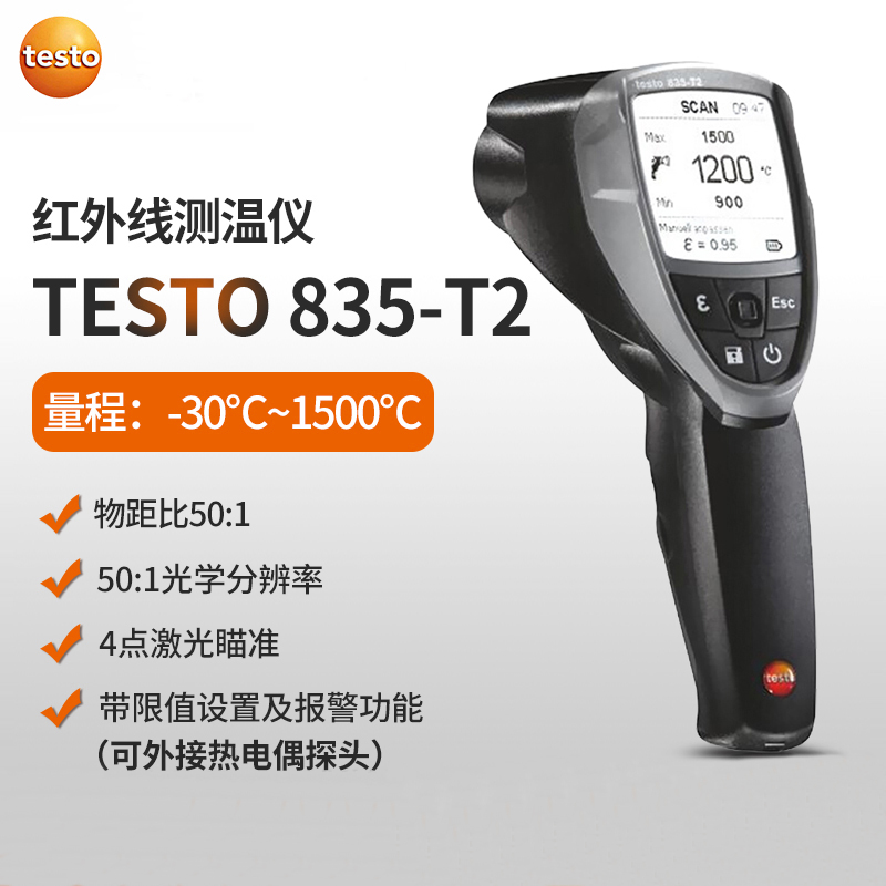 testo 830-T2具有激光瞄準(zhǔn)功能,12:1光學(xué)分辨率適合工業(yè)或進(jìn)出口表面溫度測(cè)...