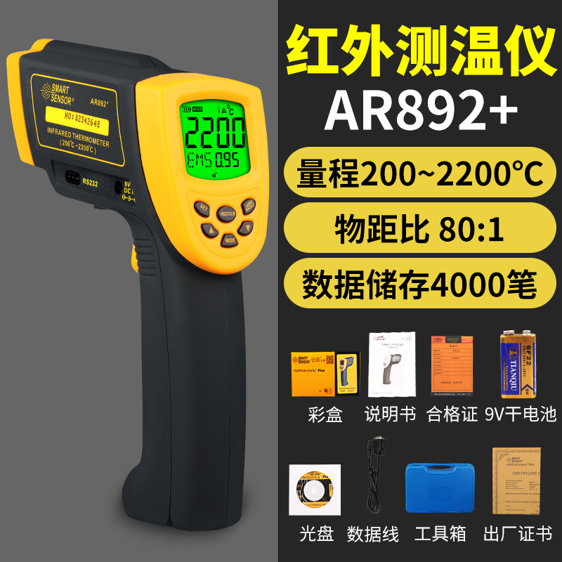 測(cè)溫范圍 200℃~2500℃(392℉~4532℉)