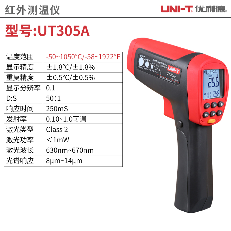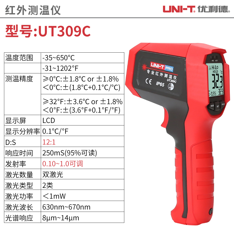 測(cè)溫范圍:-35~600℃,顯示分辨率:0.1℃,D:S:12:1,發(fā)射率0.10~1.0可調(diào)...