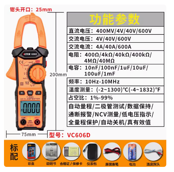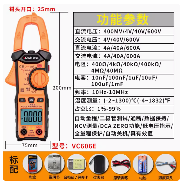 勝利VC606E真有效值數(shù)字鉗形表功能齊全,雙色注塑