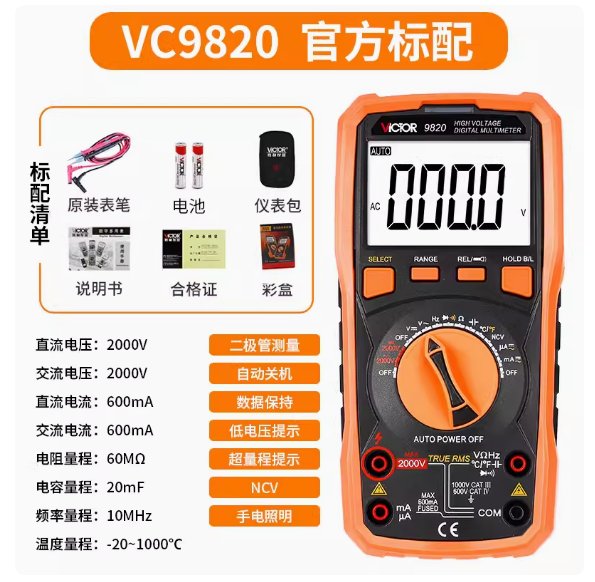 VC 9820儀表是一種性能穩(wěn)定、 用電池驅(qū)動(dòng)的高可靠性高壓數(shù)字多用表。儀表...