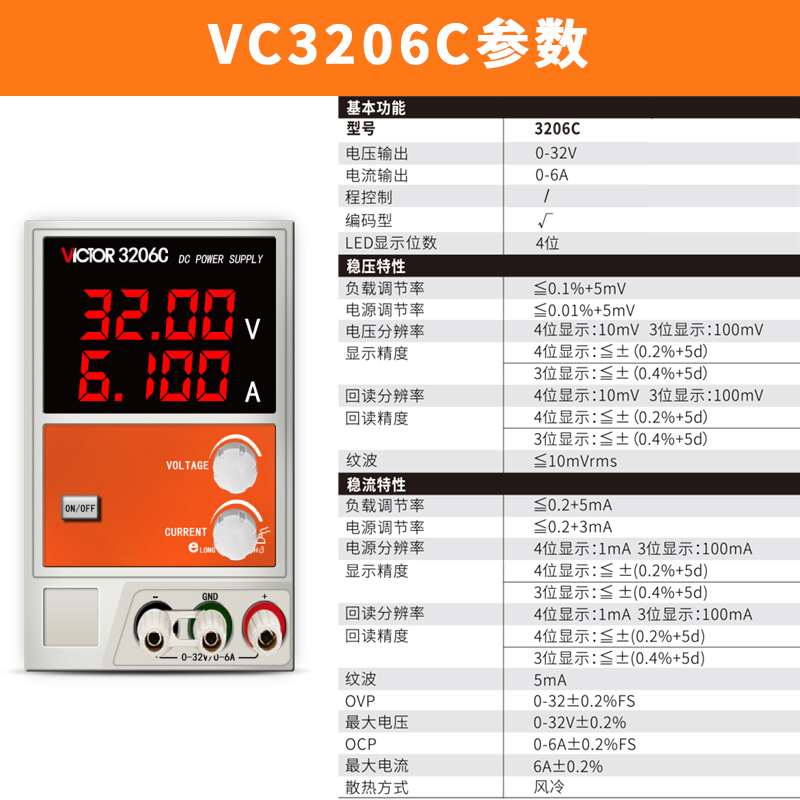VC3206C 操作方式:自動量程產(chǎn)品名稱:電源 產(chǎn)品規(guī)格型號電壓輸出電流輸...