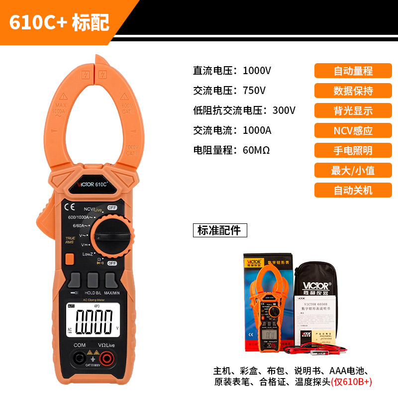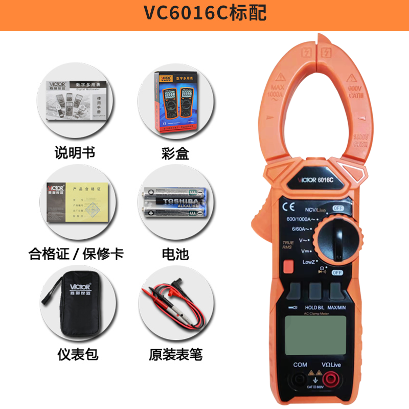 VICTOR 6016C+是6000宇顯示自動量程真有效值手持式鉗型數(shù)字儀表,整機...