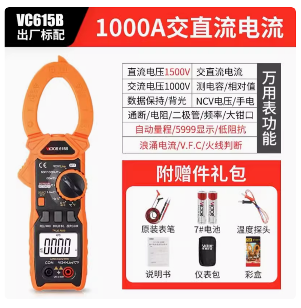 VICTOR615B是一臺6000計數(shù)手持式自動量程真有效值的鉗形數(shù)字儀表。整...