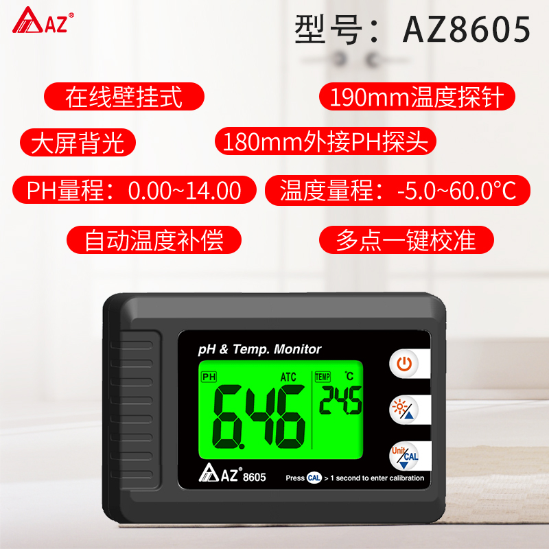 PH值測量范圍:0~14,測溫范圍:-5~60度,分辨率:0.01
