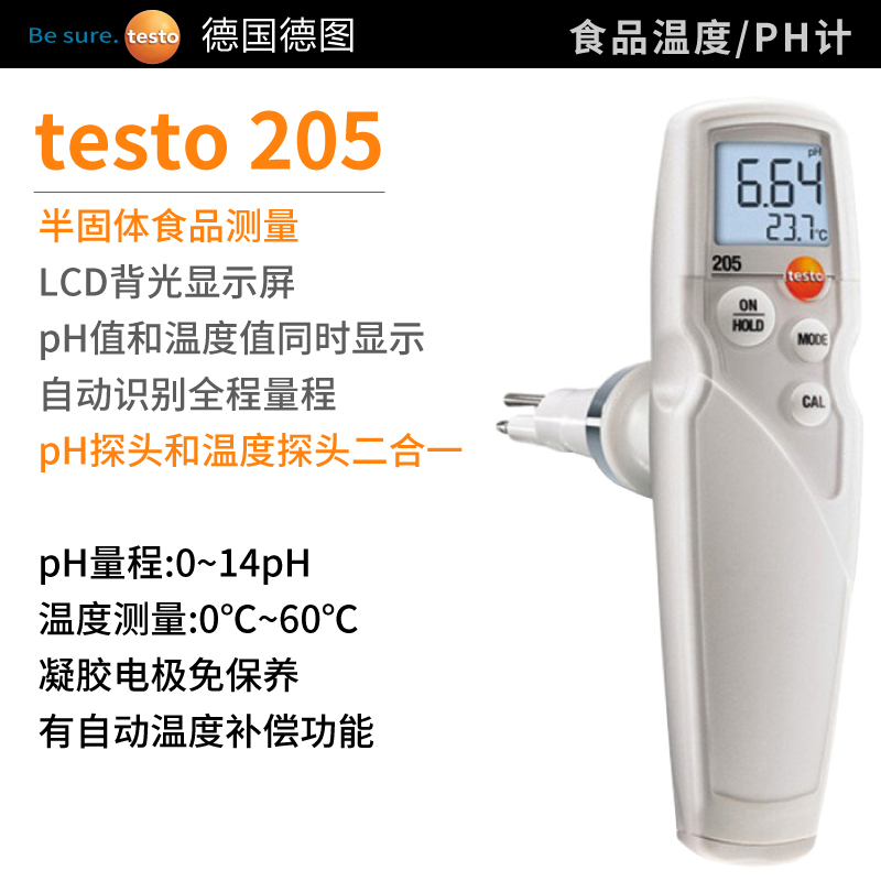 食品生產(chǎn)領(lǐng)域,酸堿度pH值和溫度值十分重要。使用testo 205您可同時測量半...