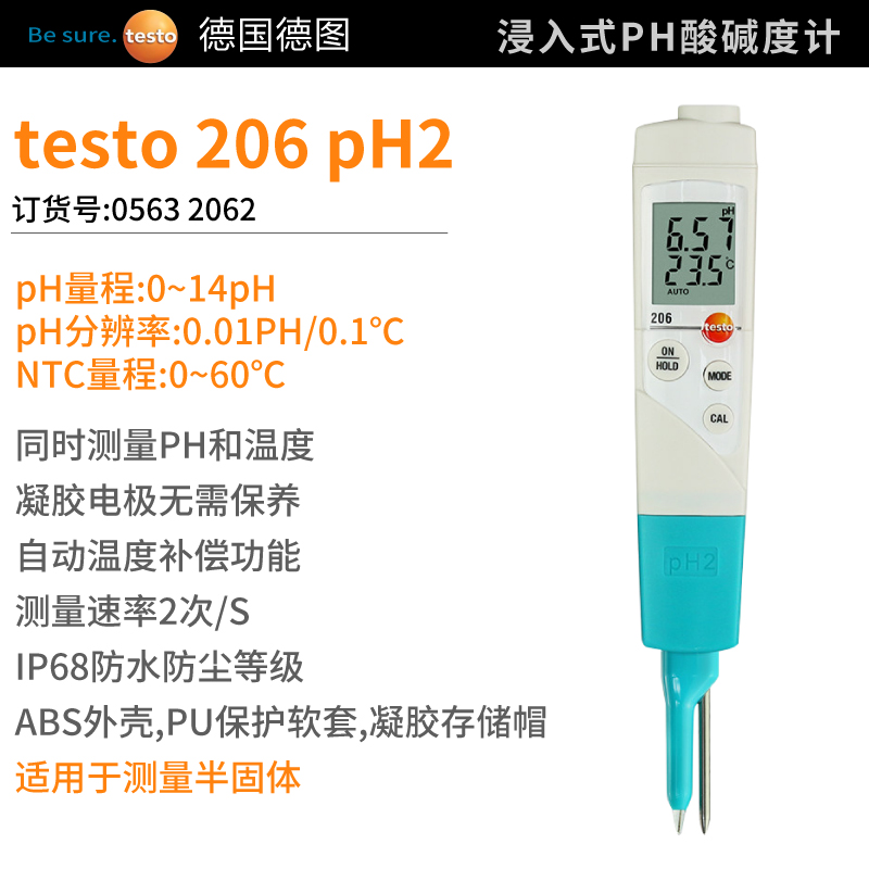 訂貨號 0563 2062 testo 206-pH2 精密型pH計,適用于現(xiàn)場檢測半固態(tài)物質(zhì)...