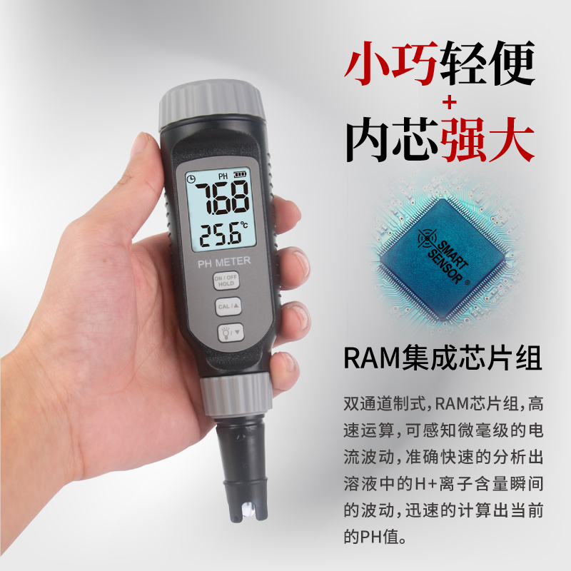 pH828M 是?,攦x表最新研發(fā)的一款酸堿度測試儀,電極部分采用旋轉(zhuǎn)防滑設(shè)計...