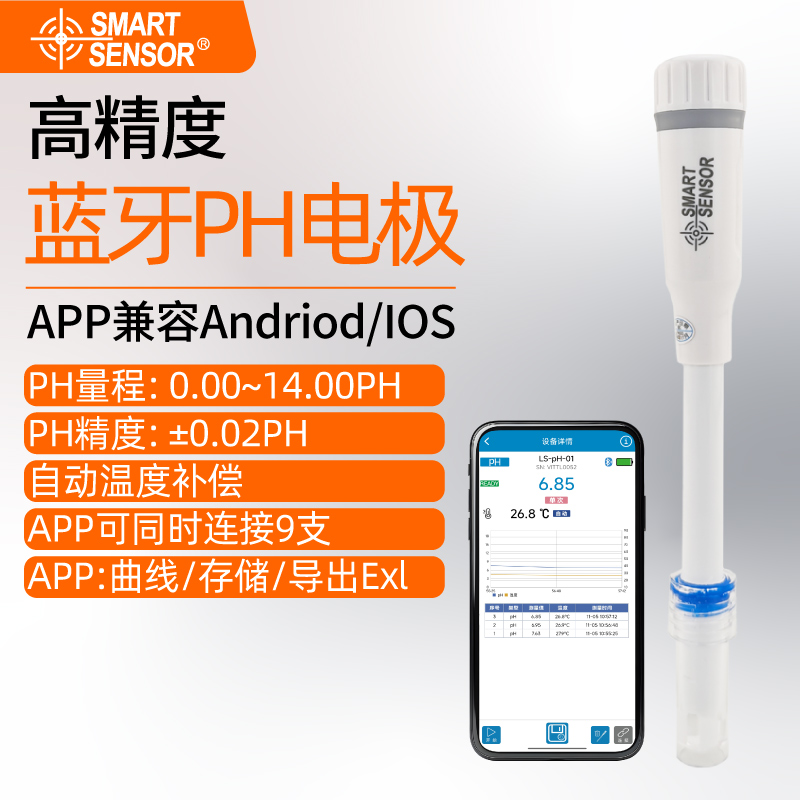 PH測量范圍:0-14;PH精度:±0.1;PH分辨率:0.01