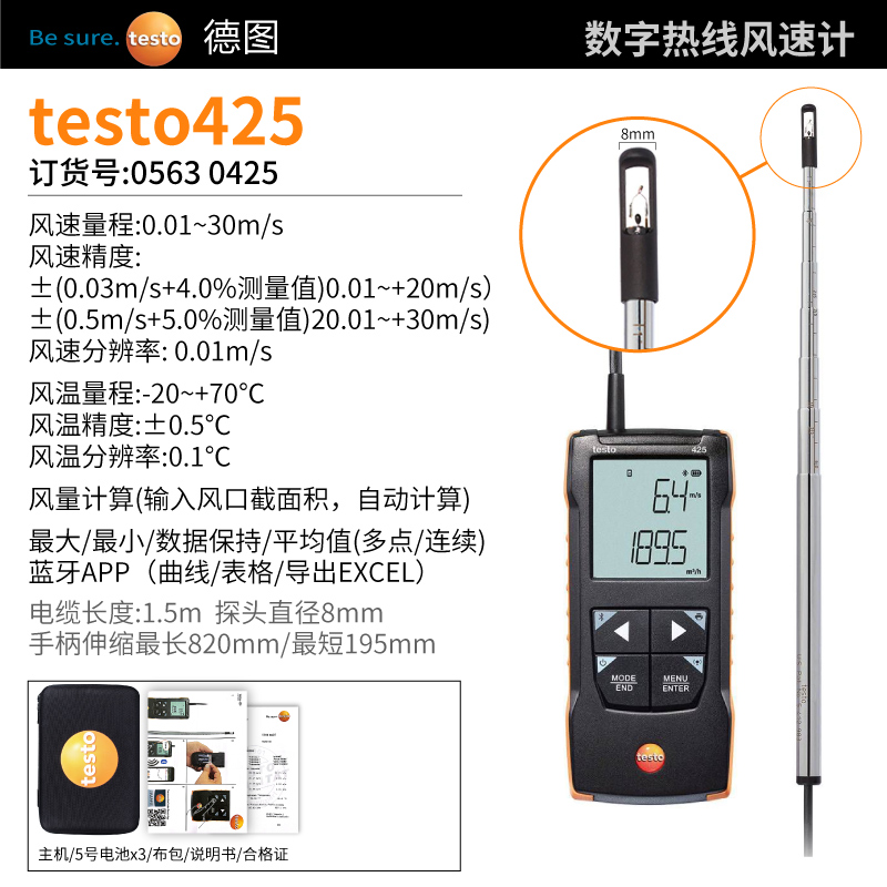 testo 425 - 數(shù)字熱線風(fēng)速計(jì),...