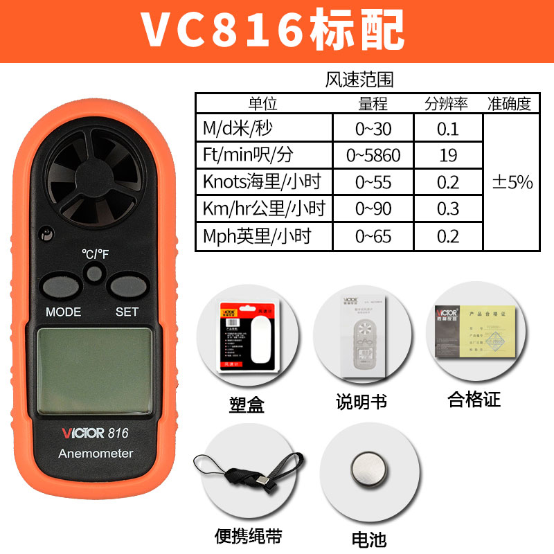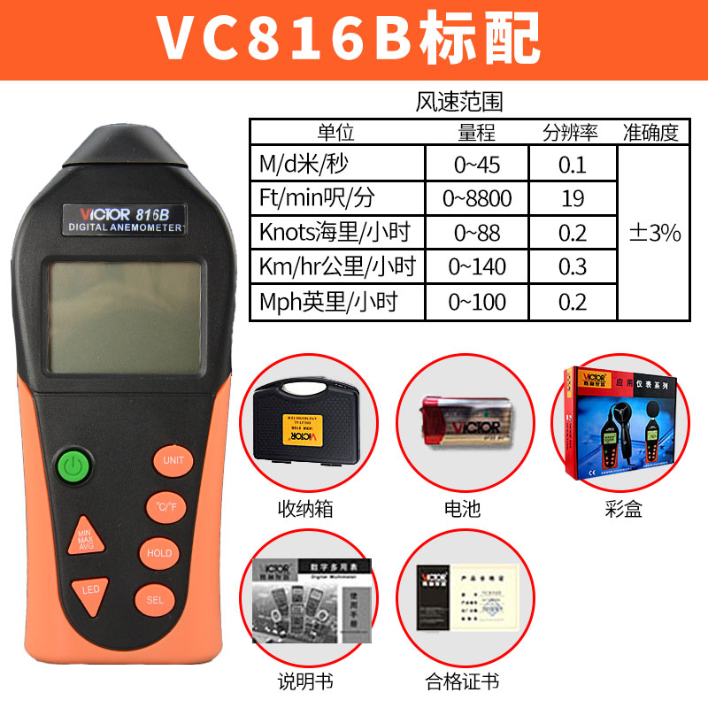 VICTOR816B風(fēng)速計(jì)一款性能穩(wěn)定,可靠,外觀新穎可同時(shí)進(jìn)行風(fēng)速風(fēng)溫測(cè)...