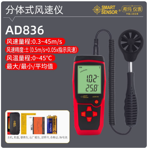 分體式風(fēng)速儀,0.3~45m/s,風(fēng)溫0℃~45℃,最大風(fēng)速/最小風(fēng)速/平均風(fēng)速測(cè)量,9...