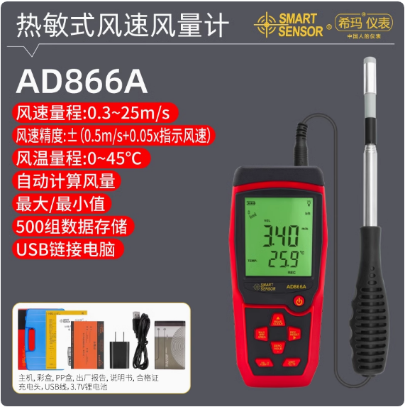 熱敏式風(fēng)速儀,0.3~25m/s,風(fēng)溫0℃~45℃,最大風(fēng)速/最小風(fēng)速/平均風(fēng)速測(cè)量,數(shù)...
