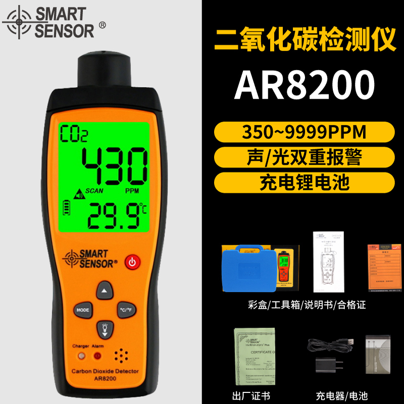 本儀器是一款便攜式二氧化碳(CO2)檢測儀,檢測到二氧化碳時,二氧化碳濃...