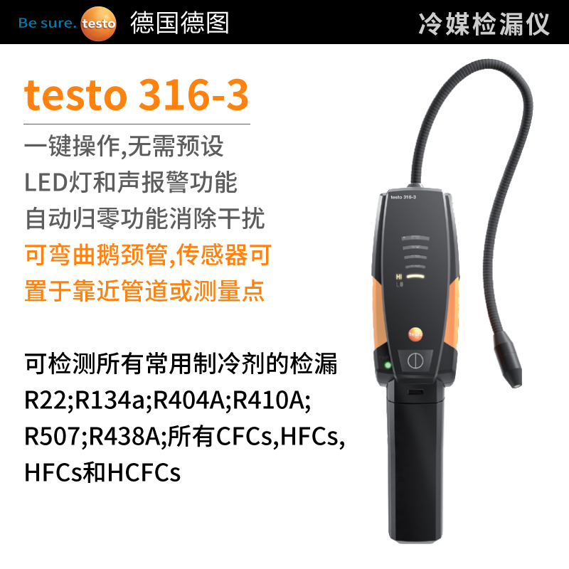 testo 316-3 冷媒檢漏儀可檢測(cè)CFC,HCFC,HFC冷媒,并定位泄漏點(diǎn)...