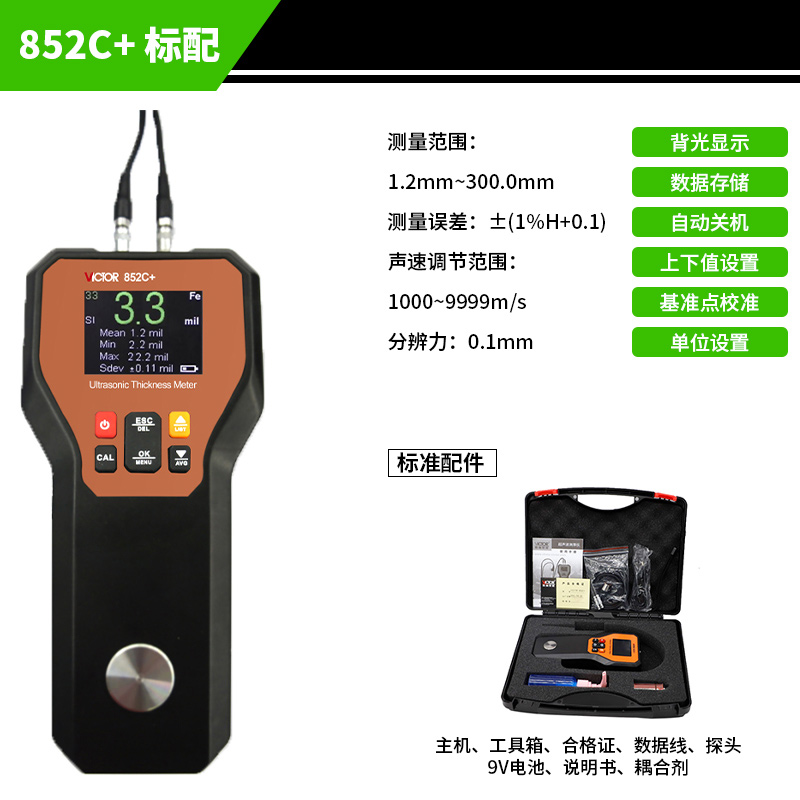 VICTOR 852C+是一款智能型超聲波測厚儀,其探頭發(fā)射超聲波脈沖到被測...