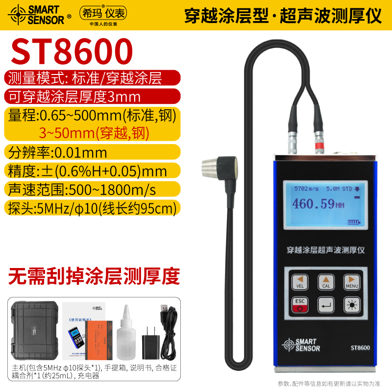 希瑪超聲波鋼板測厚儀數(shù)顯高精度金屬玻璃厚度檢測管道壁厚測量儀...