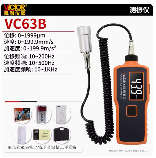 VICTOR 63系列是用于測量機械振動位移、振動烈度(速度)和振動加速度...