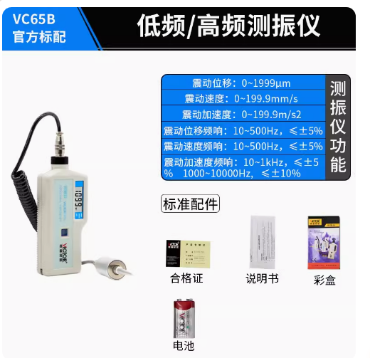 VC65B(分體)高頻便攜式測振儀是用于測量機械振動位移、振動烈度和振動加...