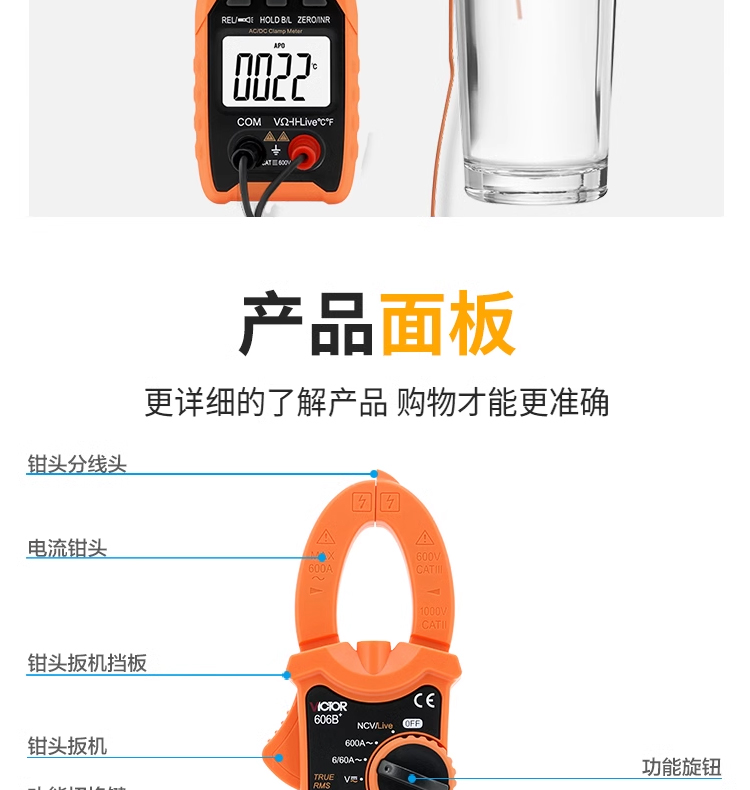 勝利鉗形萬用表VC606C+電流表數(shù)字高精度交直流產(chǎn)品價格:
