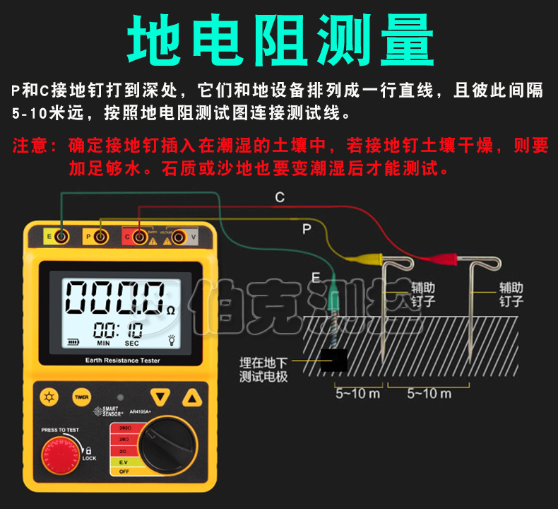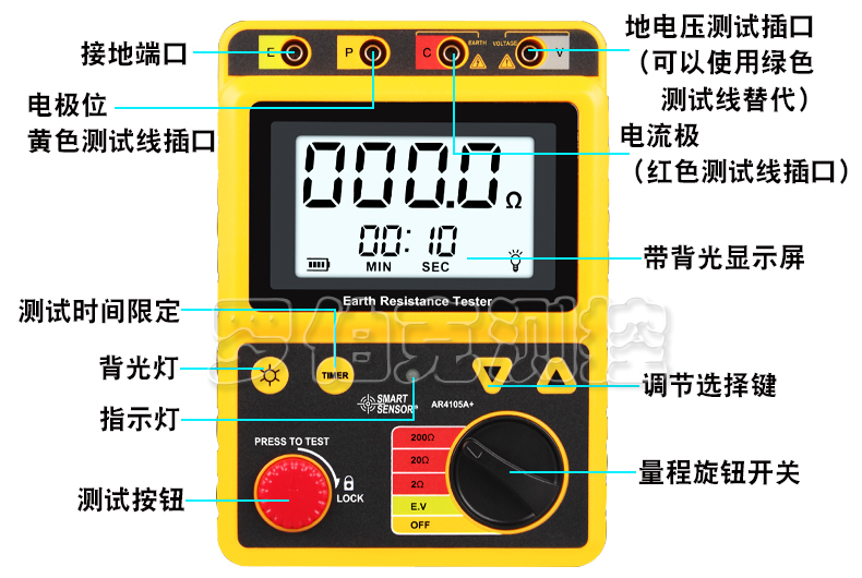 接地電阻表是用來測試電力、郵電、鐵路、通信、礦山等部門測量各種裝置的接地電阻以及測量低電阻的導(dǎo)體電阻值及地電壓。