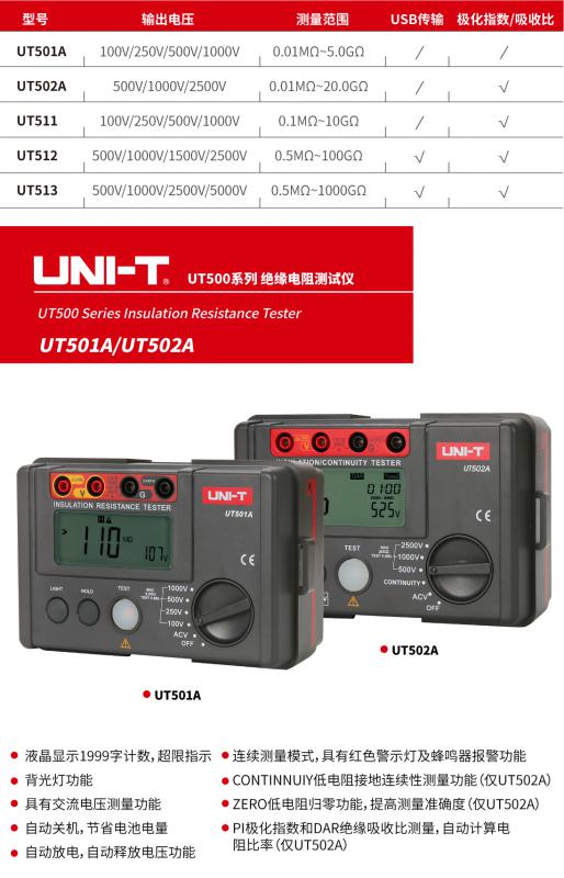 UT501A系列絕緣電阻測(cè)試儀,主要用來檢查電氣設(shè)備、家用電器或電氣線路對(duì)地及相間的絕緣電阻;