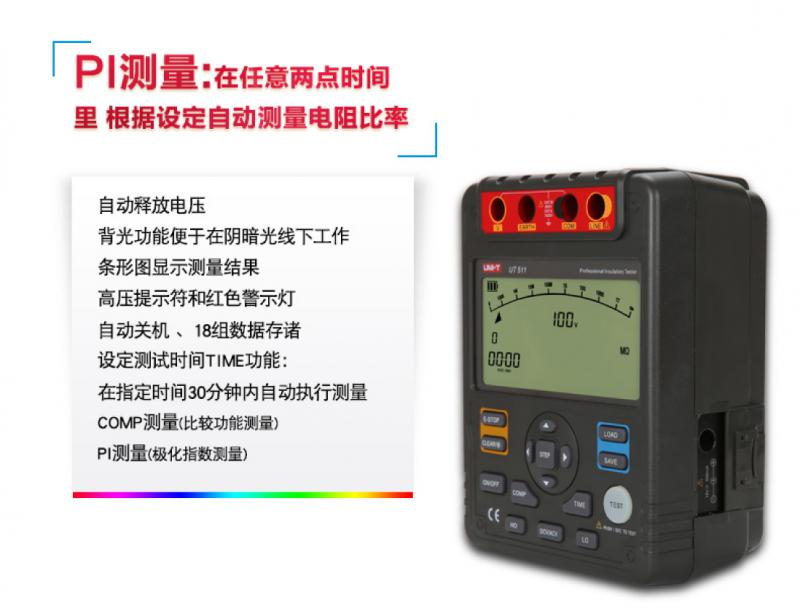該系列集成絕緣電阻、交流電壓、CONTINUITY低電阻、PI極化指數(shù)和DAR絕緣吸收比等功能參數(shù)測(cè)量;