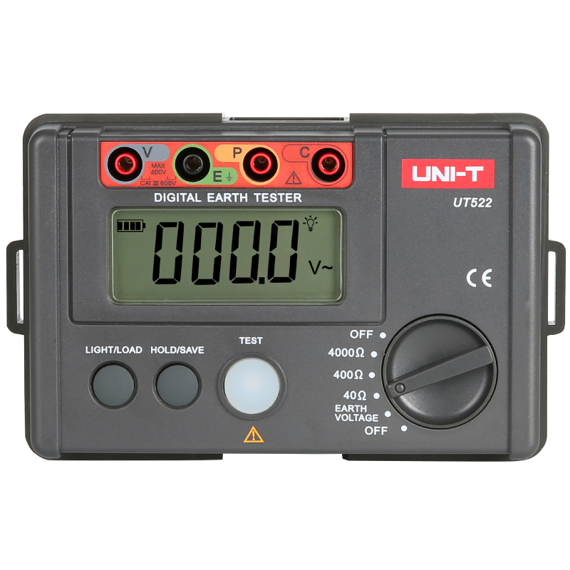 UT520系列接地電阻測(cè)試儀具有背光和電池低電壓顯示、數(shù)據(jù)保持和存儲(chǔ)、自動(dòng)關(guān)機(jī)省電功能??勺骶艿娜€式測(cè)量,也可作簡(jiǎn)易的二線式測(cè)量。