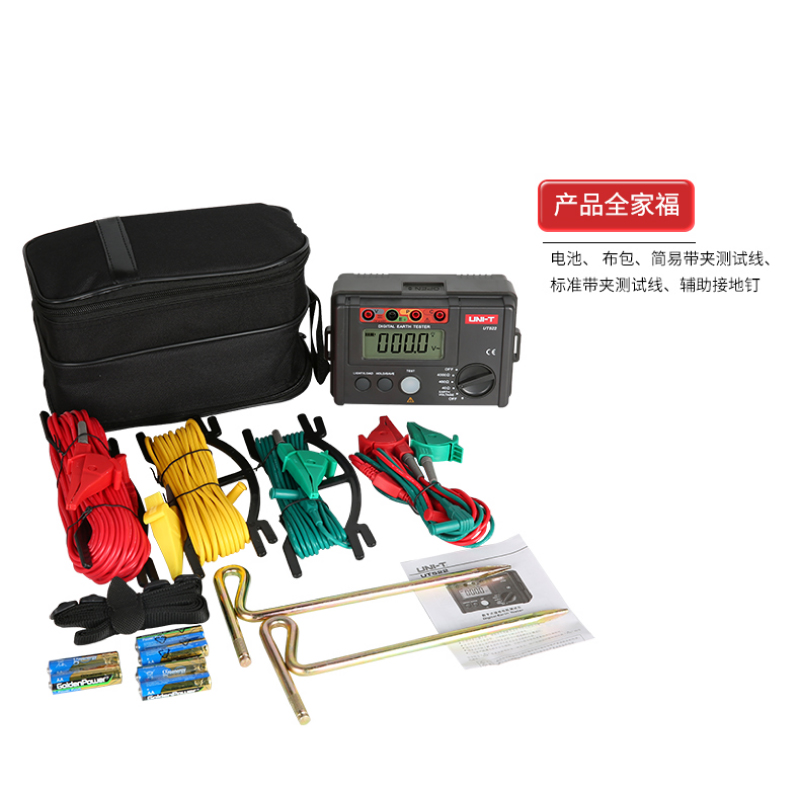 電池、 布包、簡(jiǎn)易帶夾測(cè)試線、標(biāo)準(zhǔn)帶夾測(cè)試線、輔助接地釘