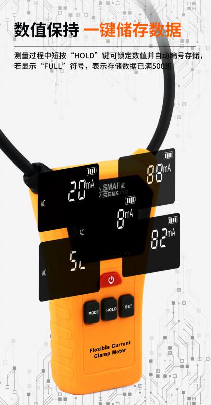 柔性電流鉗表具有報(bào)警值設(shè)定及報(bào)警指示功能,具有歷史數(shù)據(jù)讀取、保存等功能。儀表還具數(shù)據(jù)保持、 數(shù)據(jù)存儲(chǔ)等功能,使用方便,是電工安全檢測的必備工具