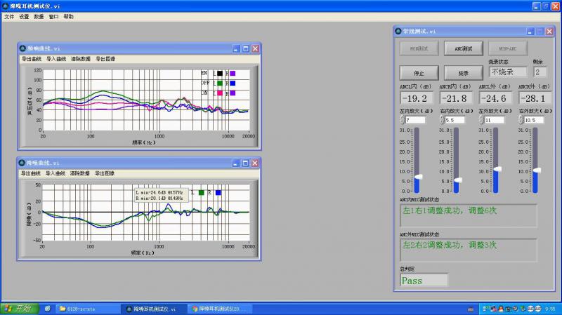 概 述:降噪耳機測試儀軟件主要測量降噪耳機的降噪性能。降噪耳機包括插入式降噪耳機和耳罩式降噪耳機。降噪手段包括被動降噪和主動降噪。被動降噪主要依靠耳機的物理特性進行降噪,主動降噪主要依靠耳機內(nèi)部的主動降噪電路進行降噪。降噪耳機測試儀軟件可自動或手動調(diào)節(jié)降噪電路內(nèi)部降噪用麥克風的放大量,來實現(xiàn)最佳的降噪效果。儀器可實時顯示主動降噪量曲線變化,自動調(diào)節(jié)降噪麥克風,根據(jù)人為設置降噪范圍自動找到最佳降噪點進行燒錄,實現(xiàn)降噪調(diào)節(jié)自動化,具有效率高、測試準確、操作方便等特點。