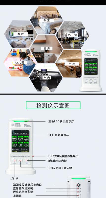 可測試:PM2.5粉塵顆粒,PM10粉塵顆粒,TVCO有機(jī)揮發(fā)物,C6H6苯