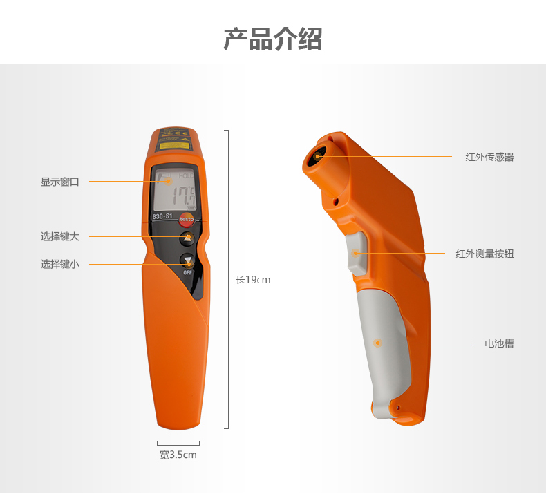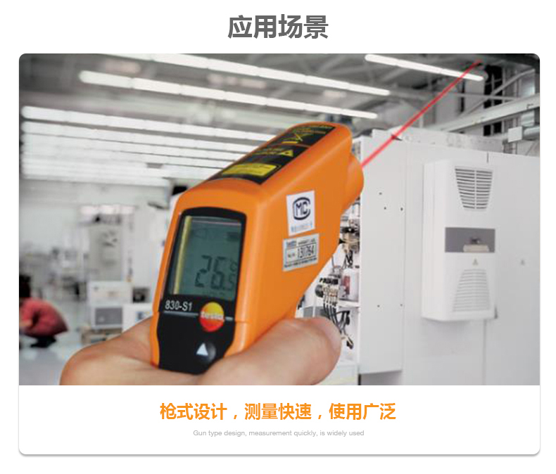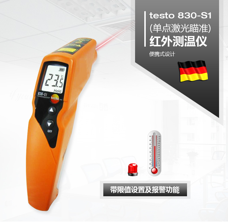 testo 830-S1 紅外測(cè)溫儀,帶單點(diǎn)激光瞄準(zhǔn)器,帶限值設(shè)置及報(bào)警功能。 便攜式設(shè)計(jì),單點(diǎn)激光瞄準(zhǔn),10:1的距離系數(shù)比,測(cè)量快速,使用廣泛。