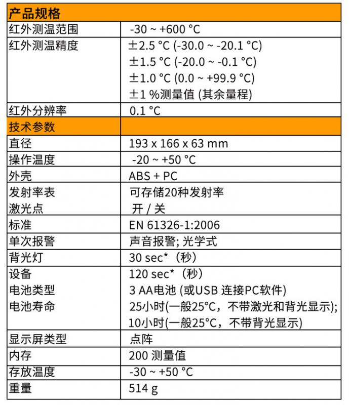 | 紅外測溫范圍 | -30 ~ +600 °C |