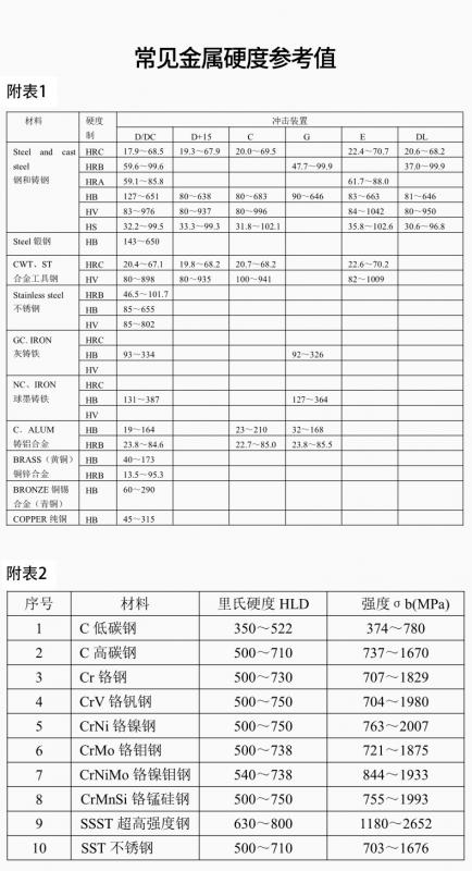 里氏HL、布氏HB、洛氏HRB、洛氏HRC、維氏HV、肖氏HS.強(qiáng)度σs |