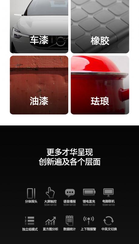 及非磁性金屬基體(如銅、鋁、鋅、錫等)上非導(dǎo)電覆層的厚度(如:琺瑯、橡膠、油漆、塑料等)。