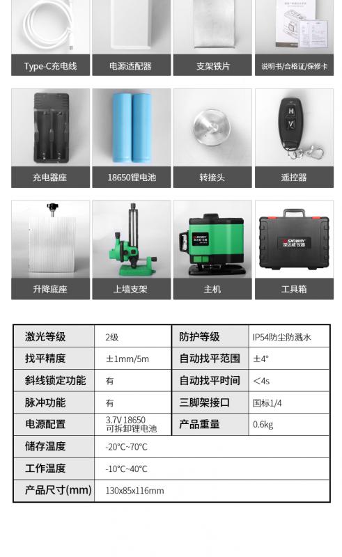 找平精度:±1mm/5m,激光精度:2級(jí),具有脈沖和斜線鎖定功能
