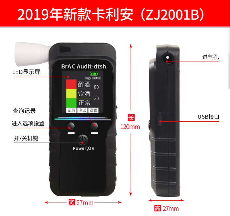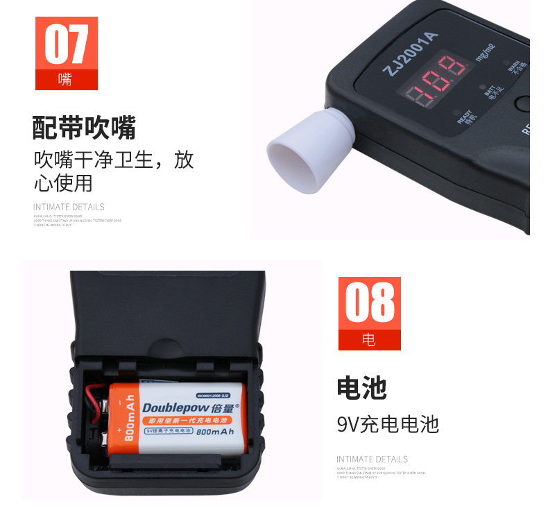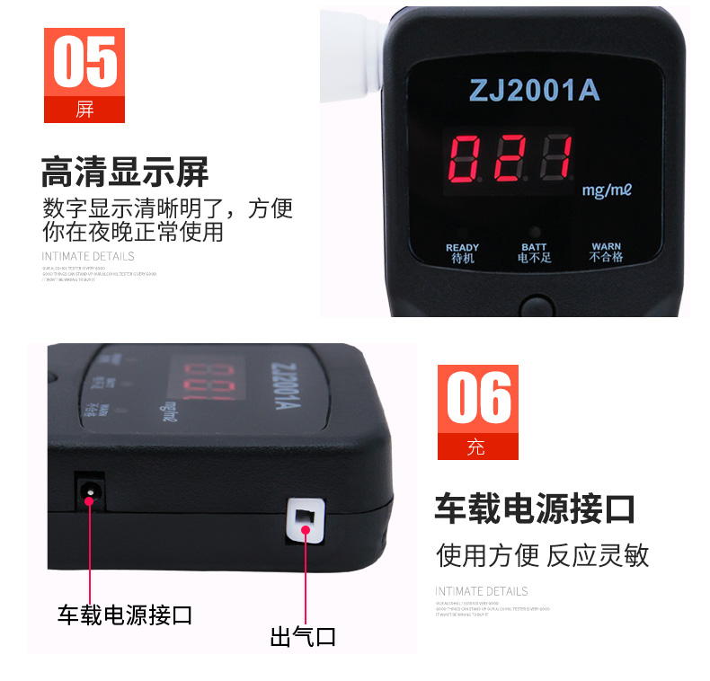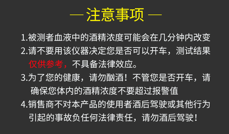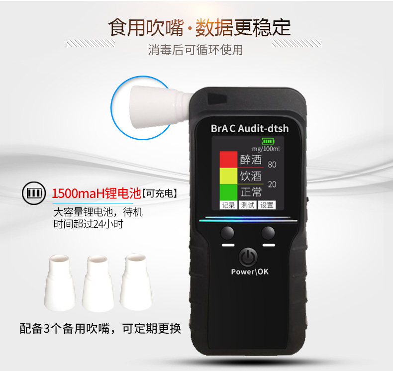 測量范圍:酒精濃度為0.00mg/ml~400mg/ml氣體,最大誤差率:土0.05mg/ml以內(nèi)