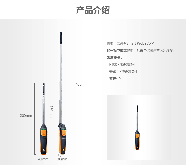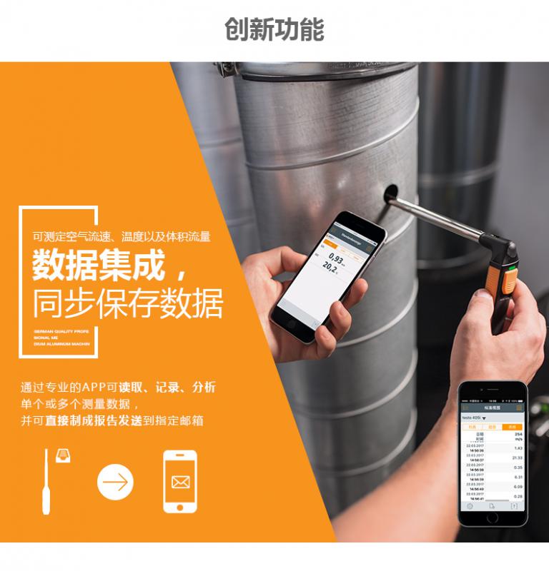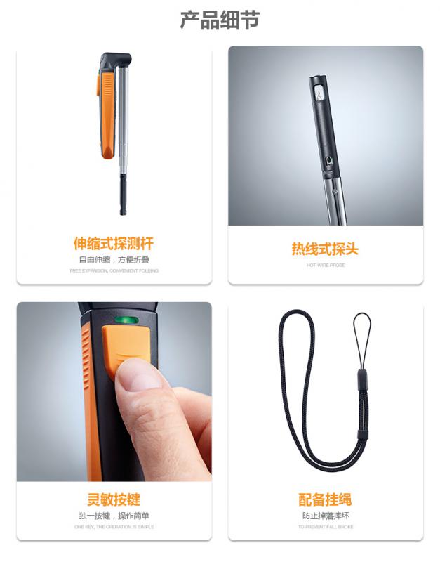 >>通過最長可達(dá)400 mm的伸縮式探測桿,方便地對通風(fēng)管道進(jìn)行測量
