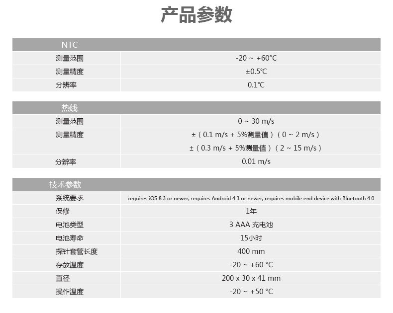 測量精度 ±(0.1 m/s + 5 %測量值) (0 ~ 2 m/s)