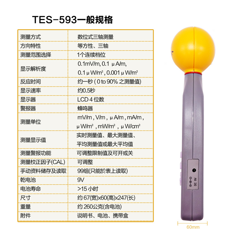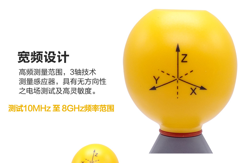 電場(chǎng)感應(yīng),3軸等方性,頻率范圍:10MHz~8GHz,過(guò)載限制:10.61mW/cm2(200V/m)