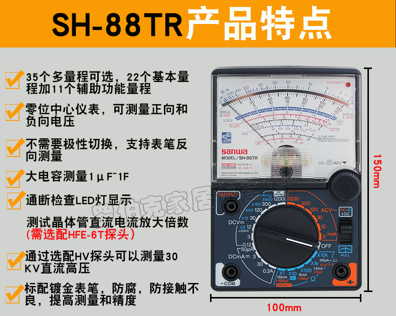 交直流電壓、直流電流、電阻、通斷、電池檢查