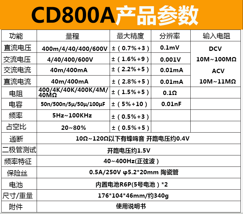 交直流電壓、直流電流、電阻、電池檢查