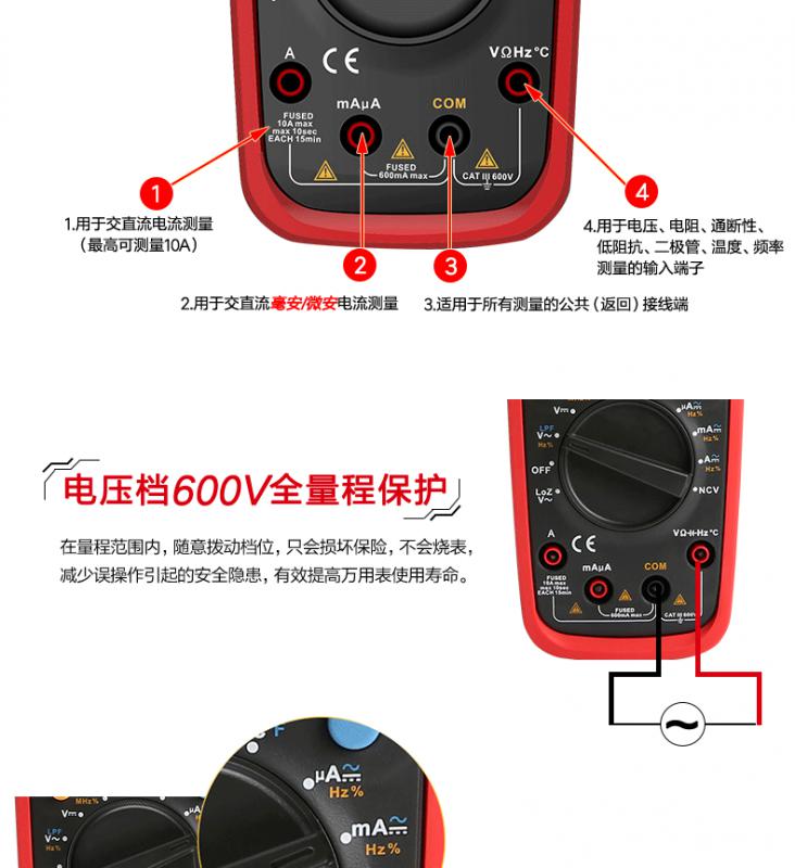 直流電壓,交流電壓:60mV/600mV/6V/60V/600V;頻率10Hz~10MHz;溫度-40~1000℃