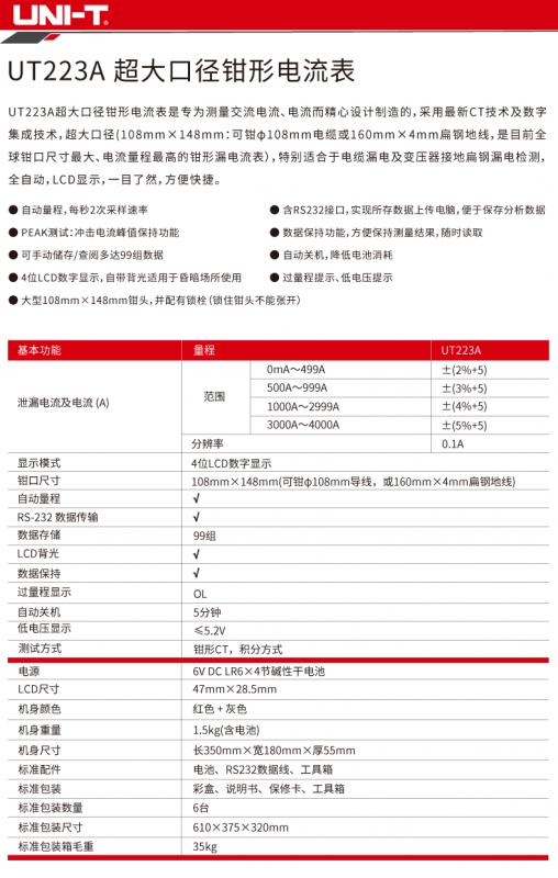 UT223A 超大口徑鉗形電流表產(chǎn)品價格: