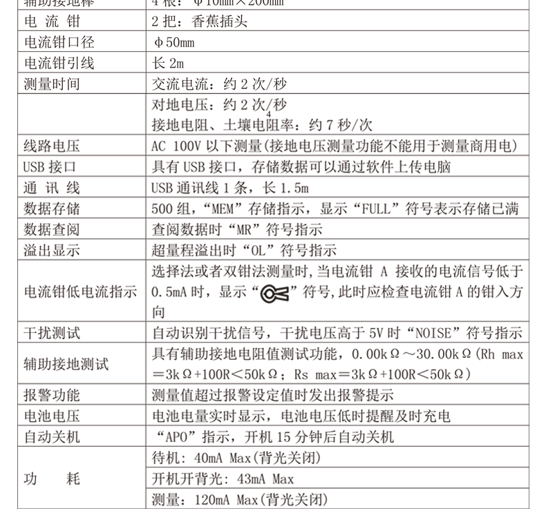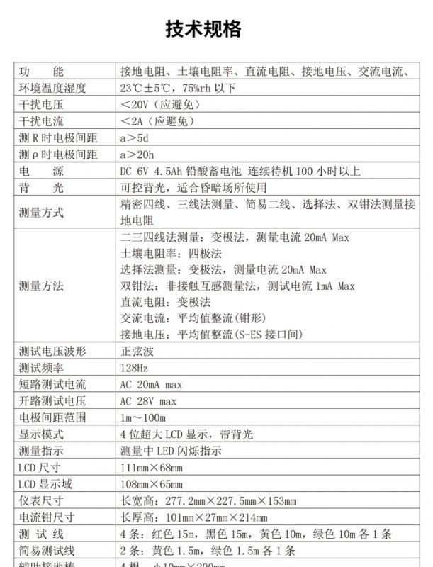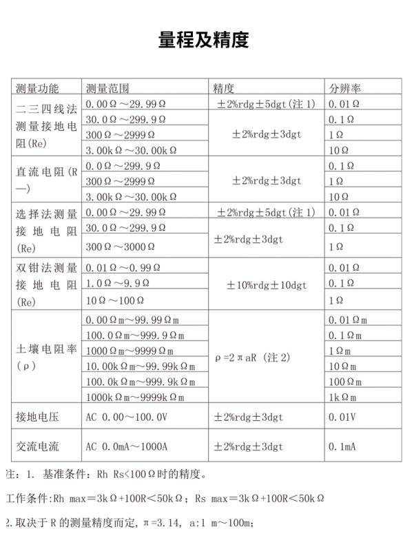 2、3、4線法接地電阻:0.00Ω~30.00kΩ,直流電阻:0.00Ω~30.00kΩ,土壤電阻率:0.00Ωm~9999kΩm