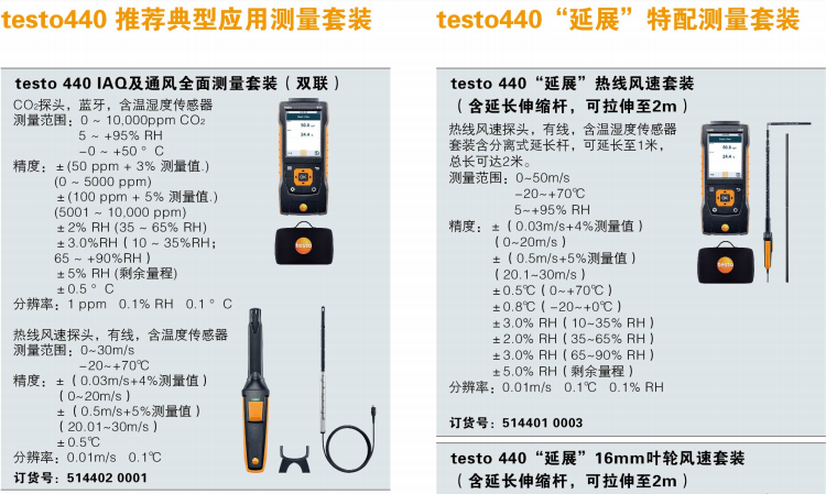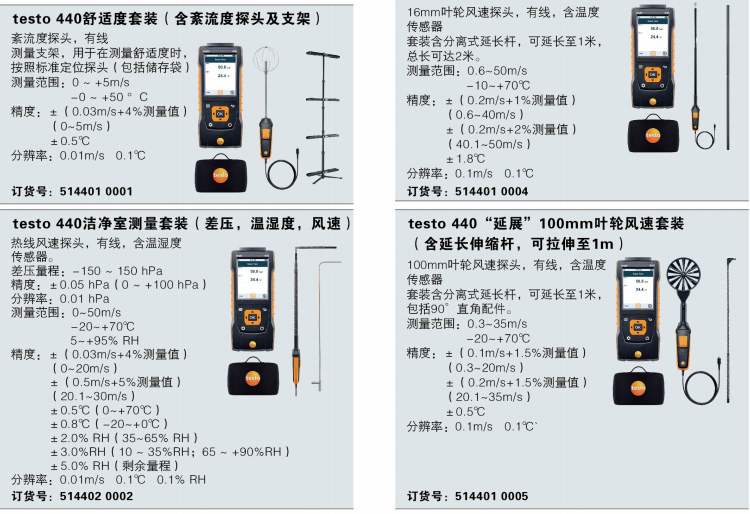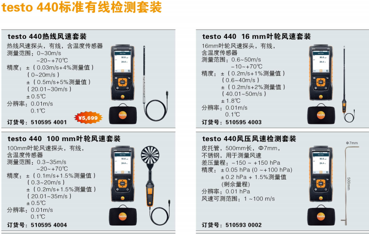 testo 440 標(biāo)準(zhǔn)有線連接熱線風(fēng)速套裝 訂貨號:510595 4001